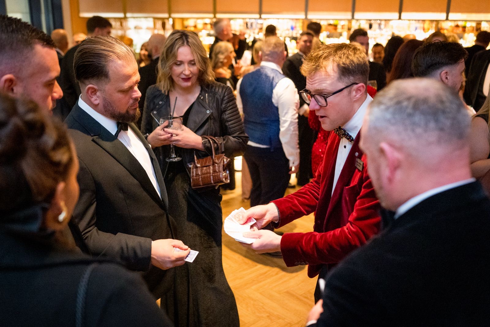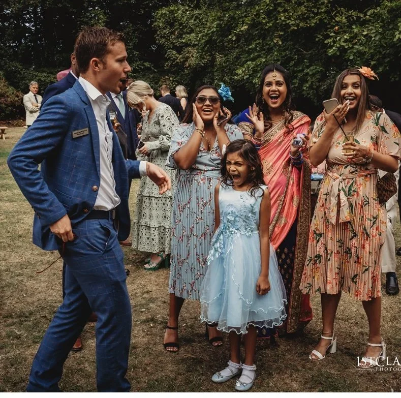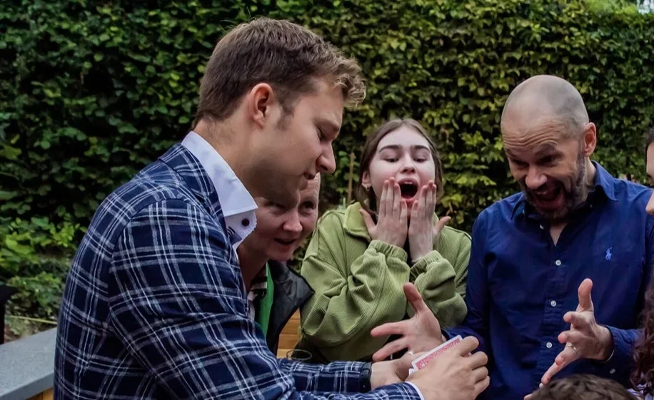 A wedding specialist, Angus brings a truly magical touch to every stage of the day - from drinks receptions and wedding breakfasts to evening celebrations. His close-up magic and mentalism create natural moments of connection, breaking the ice between guests and leaving tables astonished. He also designs bespoke routines for couples, ensuring a personal and memorable highlight that makes the day even more special. Equally at home in elegant country houses, converted barns or grand city venues, Angus adapts seamlessly to any setting.