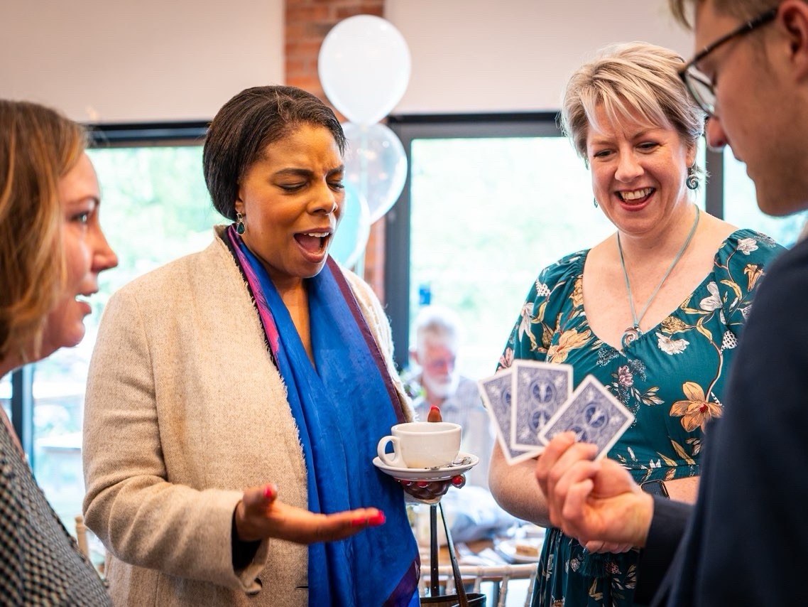Angus has performed for leading organisations such as Jaguar Land Rover, Volkswagen, Coventry City FC and The Samaritans, and has entertained high-profile figures including Sir Mo Farah, Frank Bruno, Frankie Dettori, Peter Jones, Jack Willis and Jasper Carrott. He has also shared stages with renowned magician Dynamo and appeared at Autism’s Got Talent at London’s Mermaid Theatre.