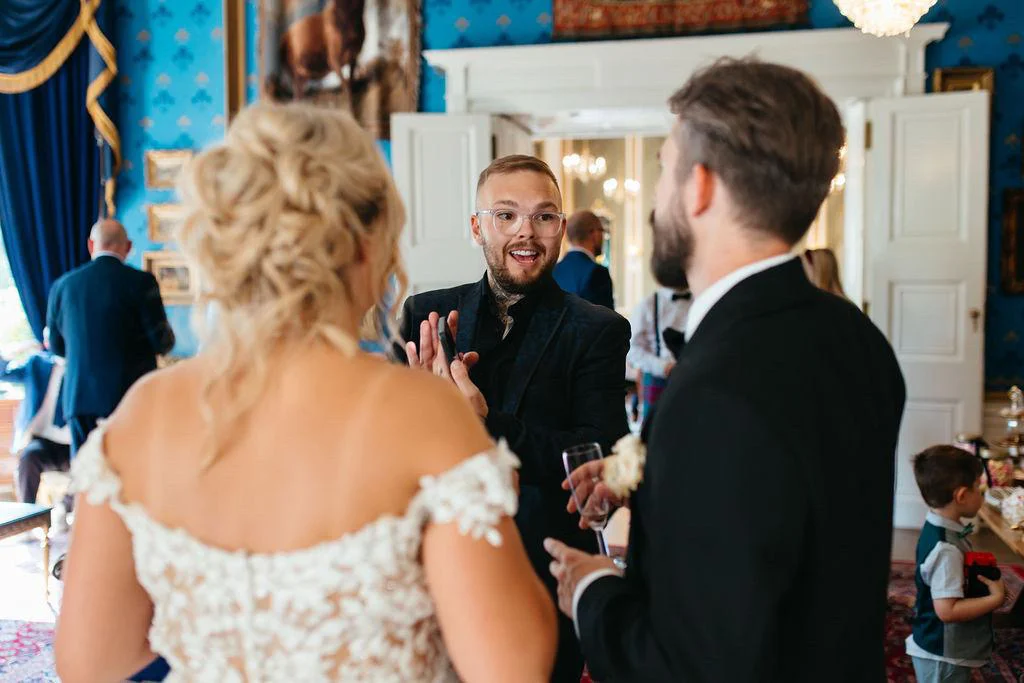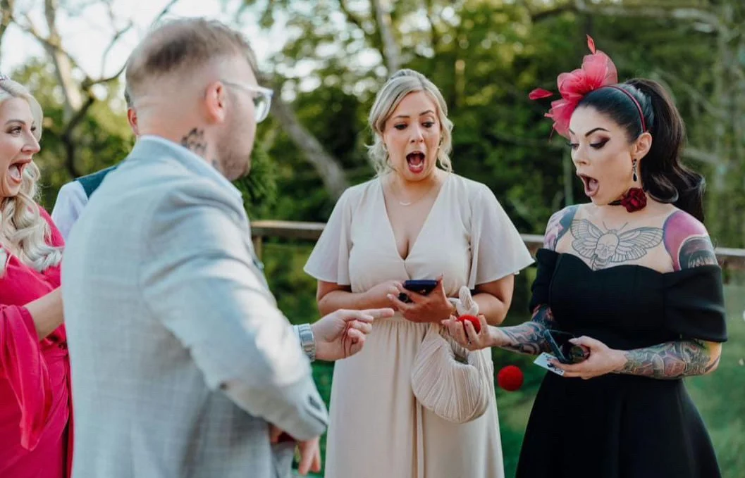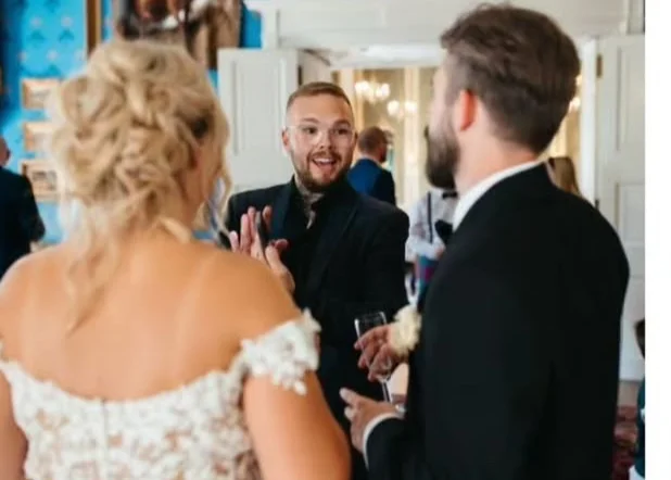 His style is modern, high-impact and precisely judged. Cameron specialises in close-up magic during drinks receptions and wedding breakfasts, creating sharp, visual moments that generate genuine reactions without overpowering the room. He also hosts - managing guest movement, introducing the couple, coordinating speeches and controlling the energy of the day. Having attended thousands of weddings, he understands timing and flow at a level few entertainers do.