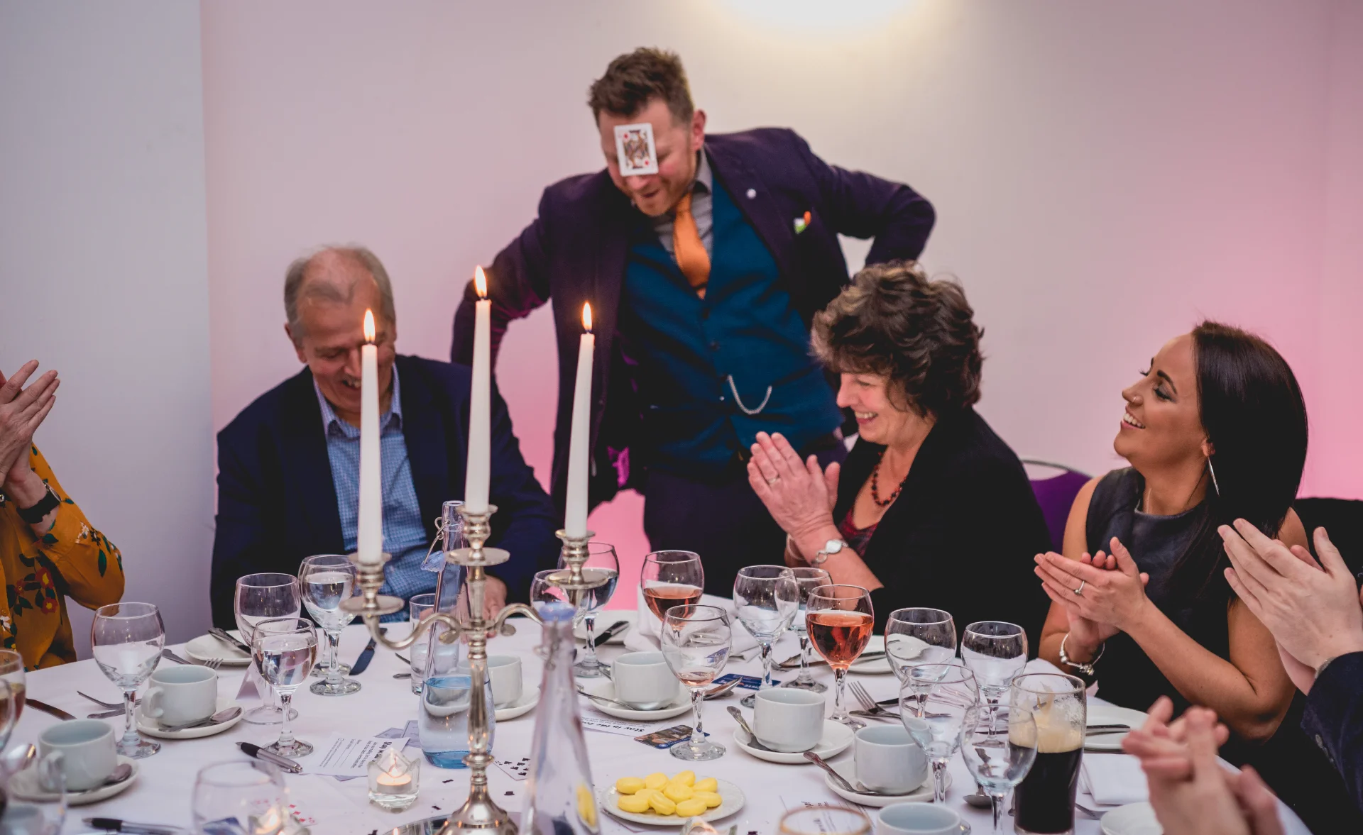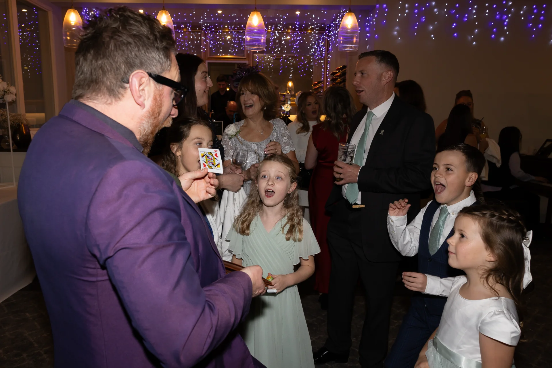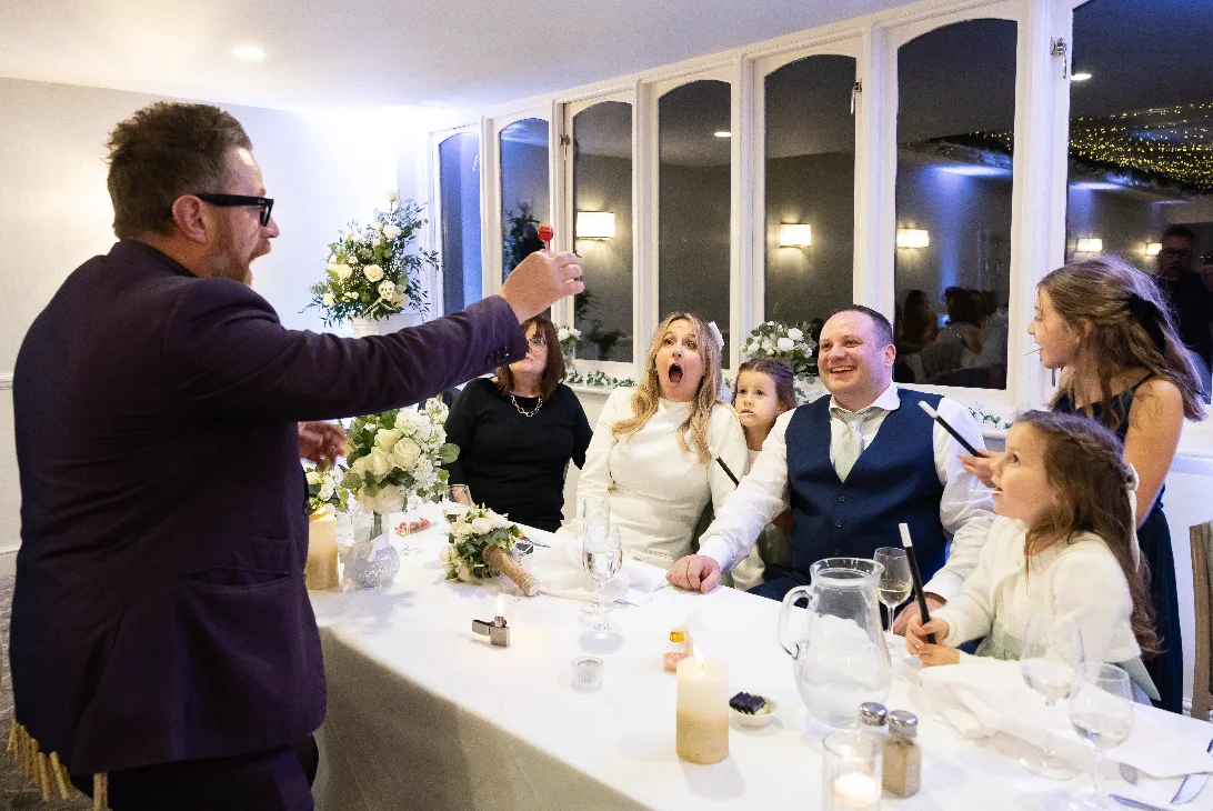 For weddings, Steve keeps guests fully entertained during drinks receptions, room turnarounds and between courses - exactly when energy can dip. He breaks the ice between families, creates genuine shared reactions, and leaves couples with bespoke keepsake moments such as his unforgettable King and Queen card routine. The result is a wedding that feels connected, seamless and talked about long after the last dance.